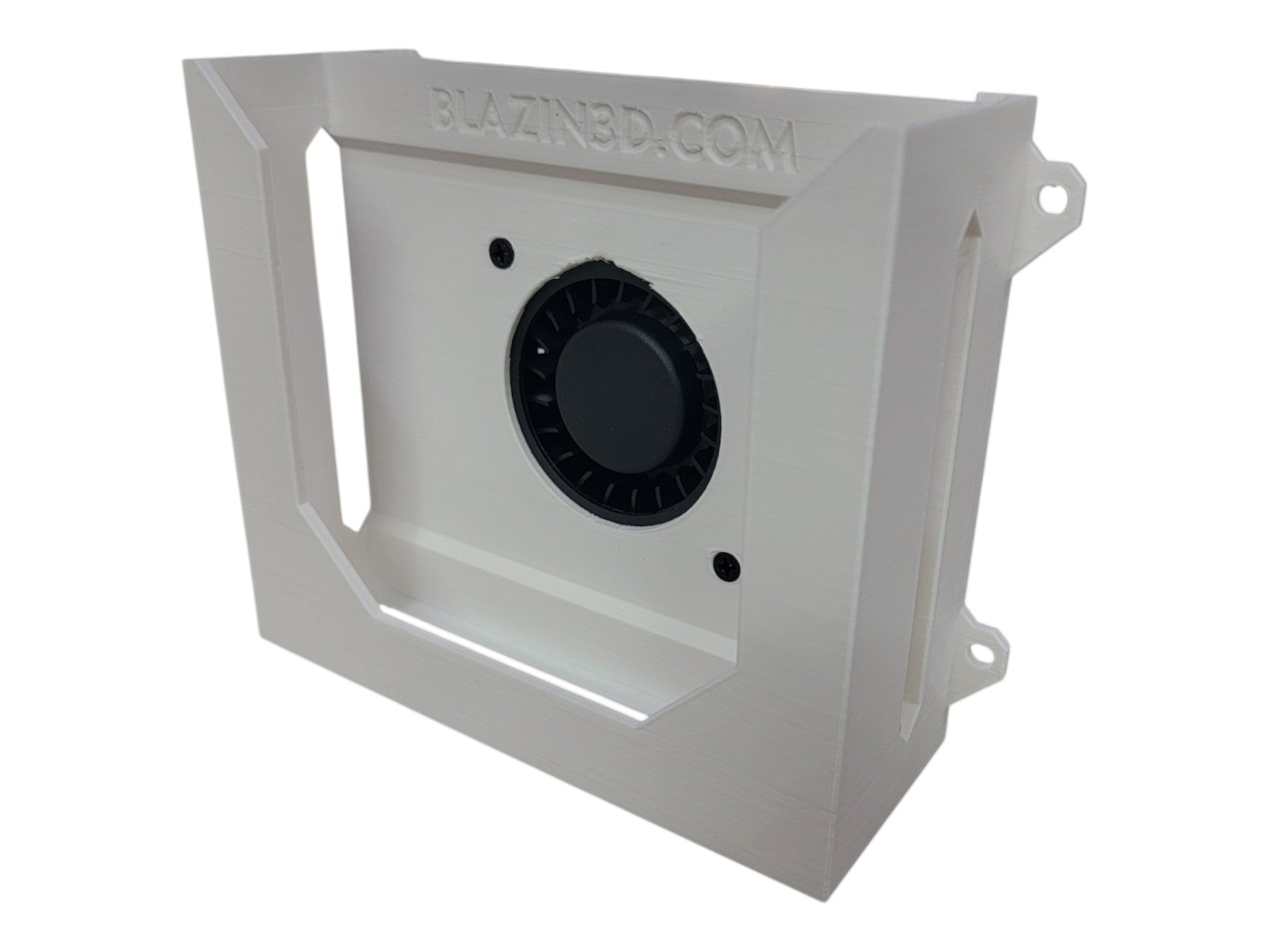 Our Ubiquiti Unifi UCG-Ultra wall mount makes it easy to secure your gateway to the wall or backboard in your network closet. Our unique design includes a vent and mounting location for a 75mm blower fan pulling air across the bottom of the equipment to aid in heat dissipation. It is well known that UCG Ultra run very hot especially when they are being worked hard and this solution drastically reduces the temps of the unit.